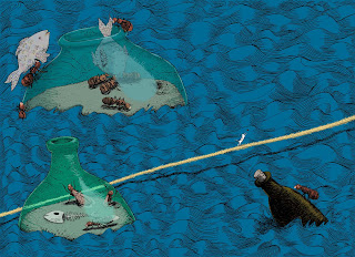 Prohibido Ordenar ( Forbidden to organize) watercolours and ink. Text :Mario Mendez, 2014 by Pequeño Editor publishing house.